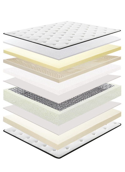 产品规格:180*200*22cm(支持定制尺寸) 软硬度:硬 适合人群:儿童,少年,青年,中年,老人 主要材质:邦尼尔连锁弹簧+环保棕+天然乳胶+护脊高弹棉+防螨针织面料 邦尼尔连锁弹簧:整网螺旋交织,具备弹力强,垂直支撑性能卓越,永不塌陷等特点。主要特点;耐高温,耐腐蚀,抗氧化,均衡贴合脊柱曲线 环保棕:高温热压3D立体成型,生物脱糖,顺应人体曲线,提供有效支撑腰椎,起到抑菌,防螨、无毒、无胶水,零甲醛。 天然乳胶:抑菌,防螨,透气、高弹、舒适,贴合身体曲线,护脊,减轻身体压力 防螨针织面料:抑菌,防螨,丝滑触感,柔软亲肤,吸湿透气 。 检测报告:面料具有良好的抗菌效果99.9%抑菌率。面料99%粉尘驱率,乳胶有效抑菌防螨 甲醛含量低于国家安全标准